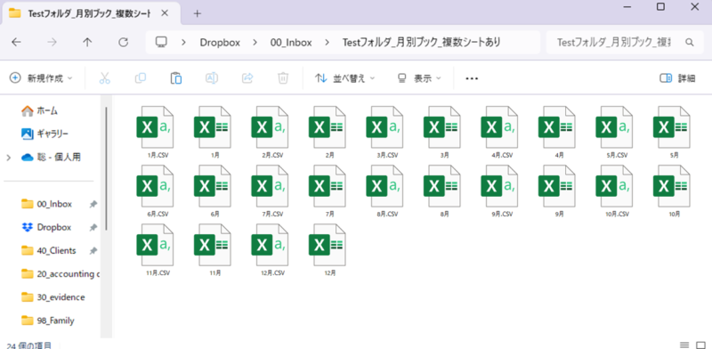 たとえば、フォルダ内にこういった複数のファイルがあって、
