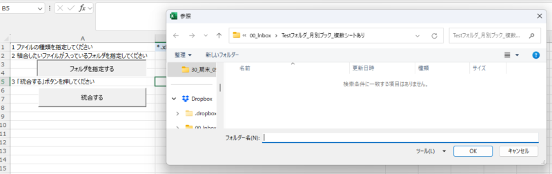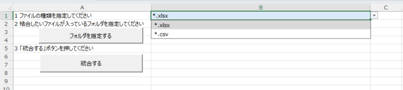 フォルダを指定するボタンで、統合したいファイルが入っているフォルダを指定しておき、