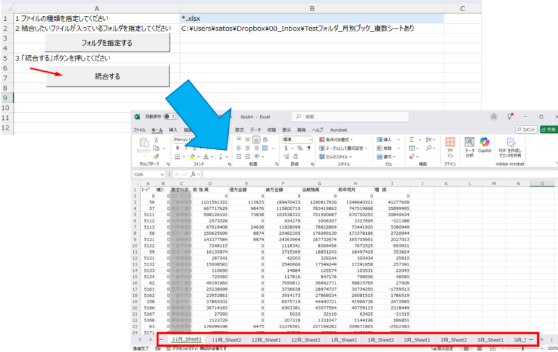 フォルダ内のExcel・CSVを1つのブックでシート別に統合するマクロ