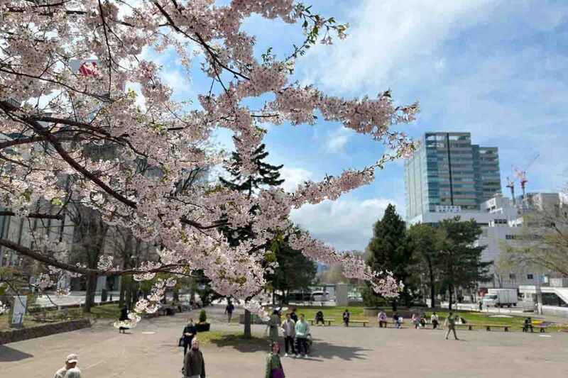 テレビ塔のふもとにも1本の桜の木。