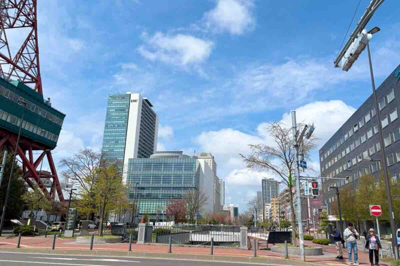 川からちょっと離れてテレビ塔のふもとから大通公園を眺めて。