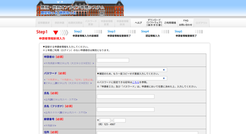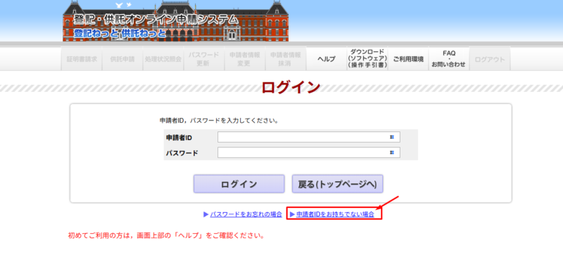 ここまでの準備ができたら、つくったIDとパスワードを使って申請書をつくっていきます。