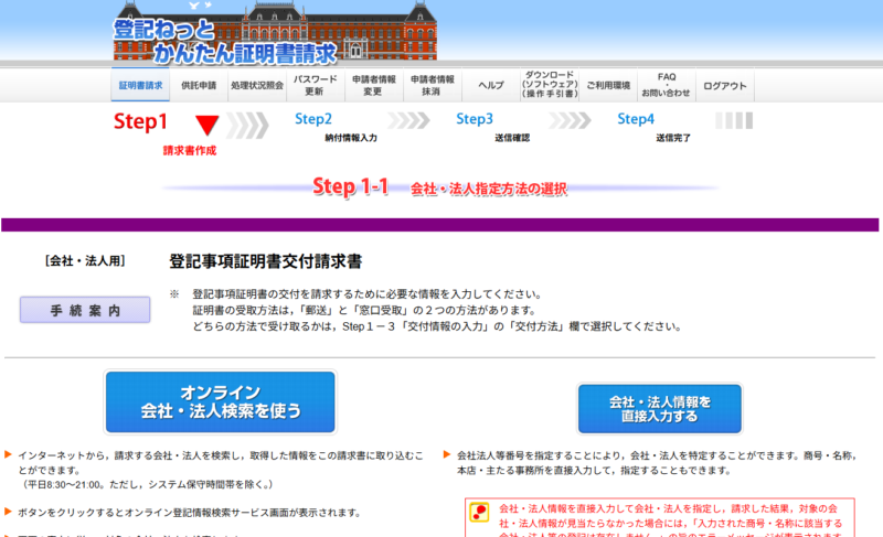 登記事項証明書はネットで申請することができます。