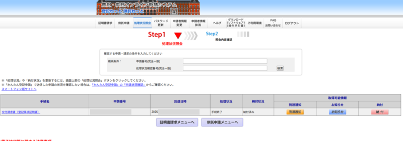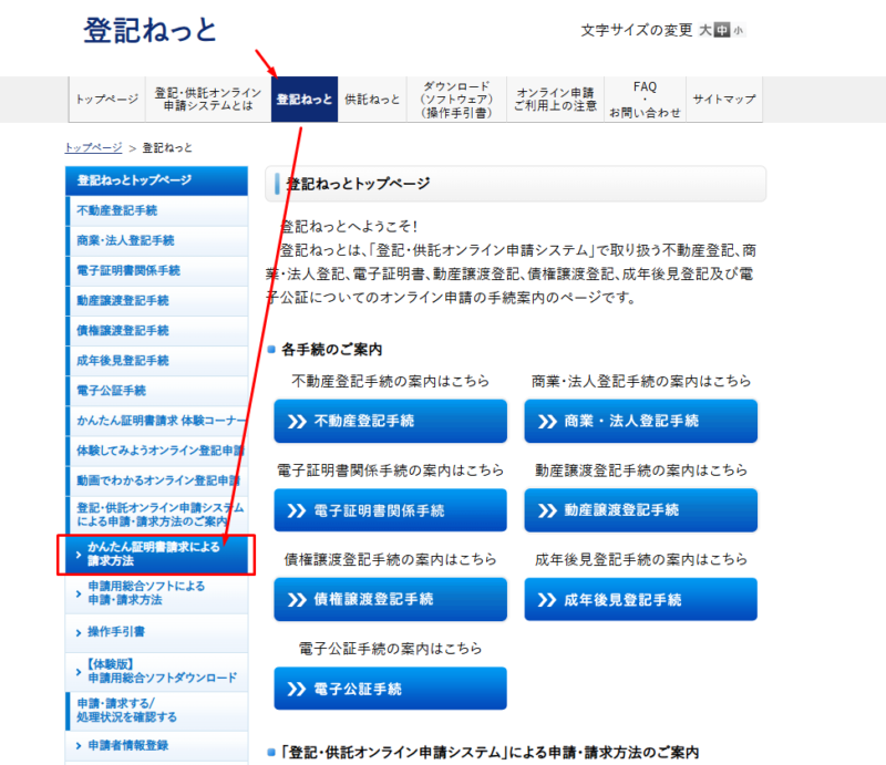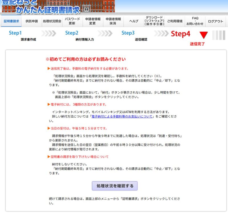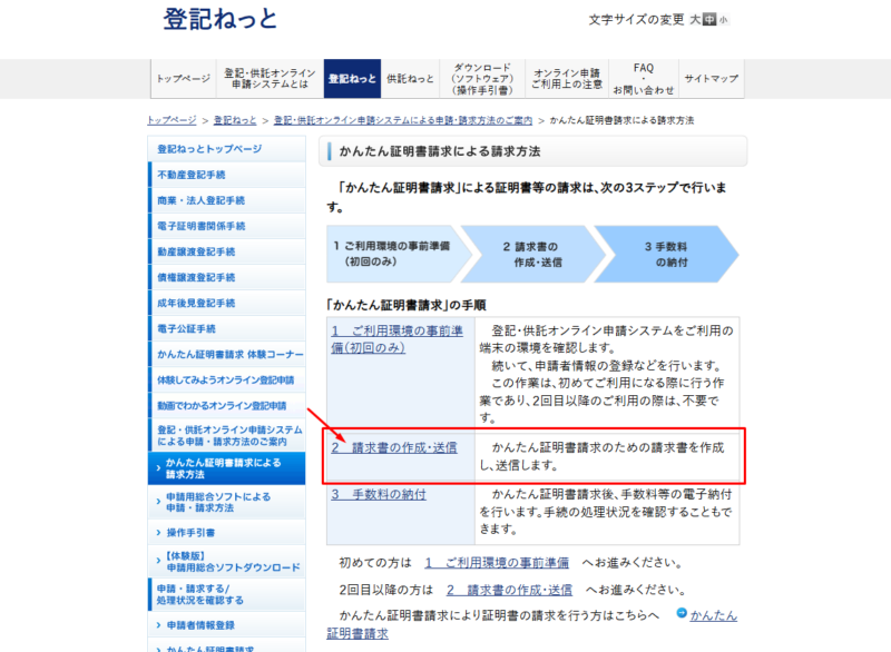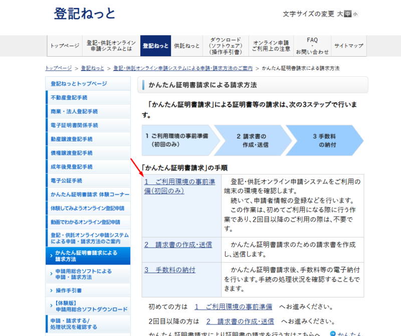 登記ねっと(かんたん証明書請求)の流れ