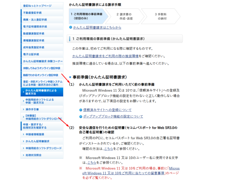 はじめてやる場合は、「1 ご利用環境の事前準備(初回のみ)」 をクリックします。