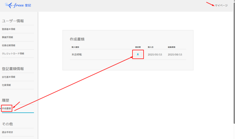 ちなみに領収書は[マイページ]→[手続書類]でダウンロードできます。