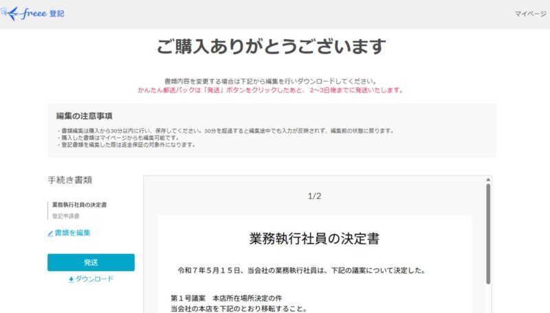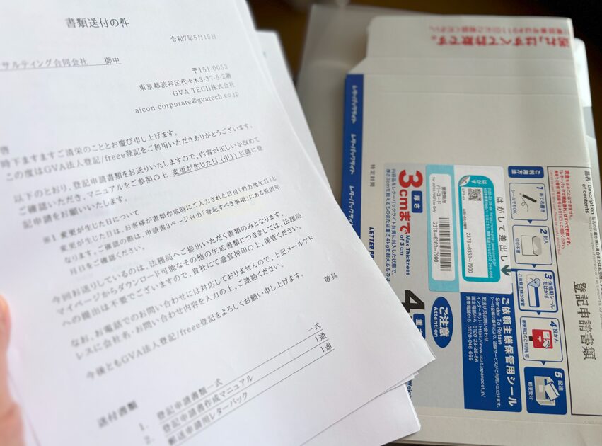 ・5/16(金):freee登記で[発送]クリック(レターパックを自宅に届けてほしいとお願いした)