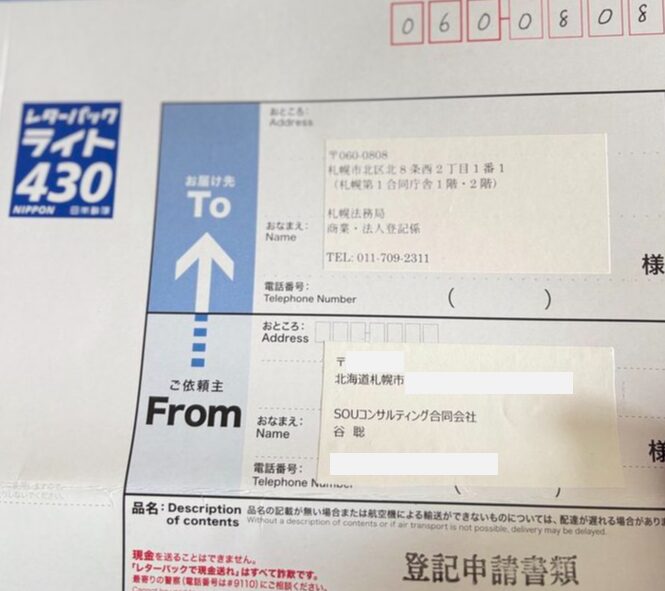 ・法務局に郵送するとき用のレターパック(宛名印字あり)
