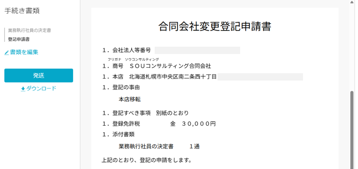 ちなみに、「業務執行社員の決定書」は、この会社情報とも連動して自動で作成してくれます。