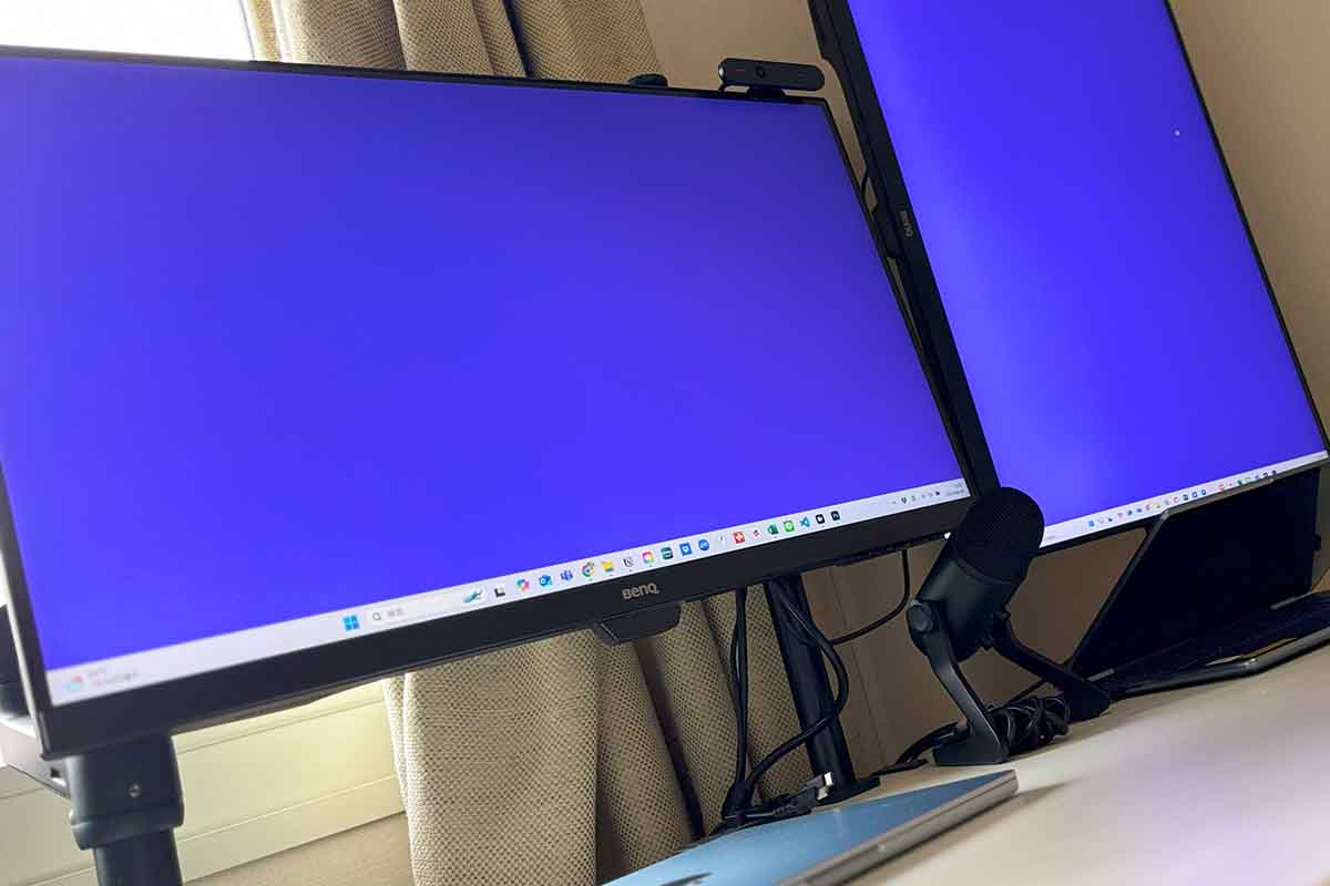 わたしは、モチベーションを安定させやすい意味もあり、デスクトップの背景は、好きな色(青)一色で設定しています(どのパソコンでも同じ設定にしています)。