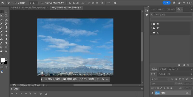 「レイヤー」→「新規」→「背景からレイヤーへ」を選び、「背景を削除」をクリックすると、