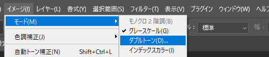 続けて、「イメージ」→「モード」と選んで、今度は「ダブルトーン」を選びます。