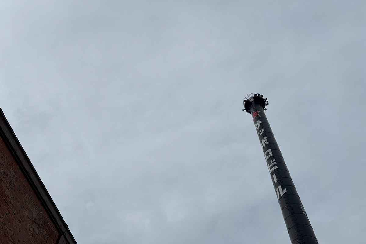 ※旧サッポロビール工場の煙突を見上げて – by iPhone 15