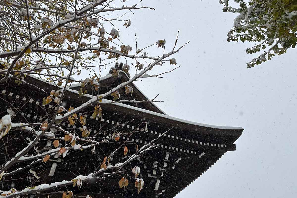 うっすらと、といっても10cmほどの積雪です(冒頭の写真は、朝のウォーキング中に撮ったお寺の境内の様子)。