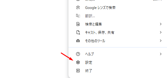 まず、Chormeの画面、右上にある「⋮」をクリックして、設定を開きます。