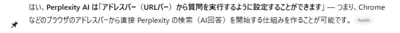 ただ、アドレスバーに調べたいワードを入れて生成AIで調べることができればより便利に使えるかと。