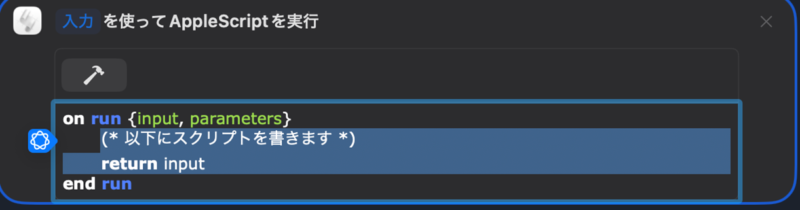 この「(* 以下にスクリプトを書きます *)return input」の部分に、コードを書きます。