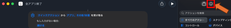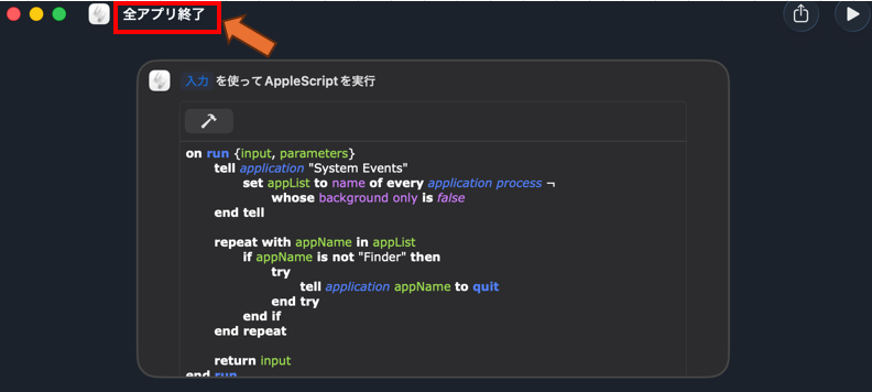 今つくったスクリプトに名前をつけておくと、あとで見たときにもわかりやすいです(今回は「全アプリ終了」にしました)。