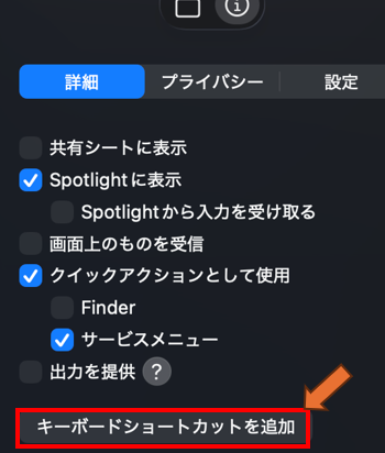 次の「キーボードショートカットを追加」をクリックして、
