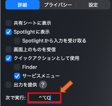 このように、デフォルトでは「^ ⌥ Q」となっています。