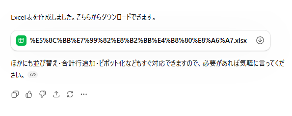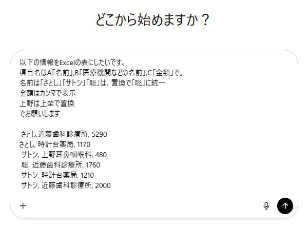 件数が少なければ、データを整えることもChatGPTにお願いしてもいいでしょう。