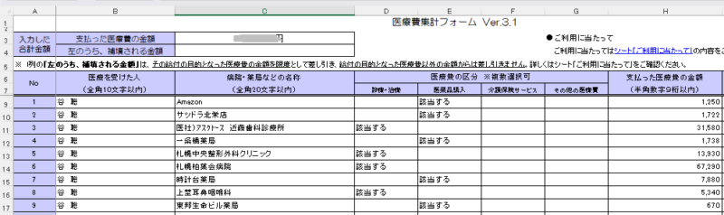 わたし自身は、1年を通じて医療費を支払った都度、Excelに入力するようにしているのでそこまでではありませんが、1年分をまとめてやるとなると、それなりのボリュームになることもあるでしょう。家族構成によっても件数は増えますし。