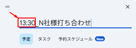 ただ、これだけだと実際のアポの時間がわからないので、タイトルの先頭に、”実際の開始時刻”を入れています。
