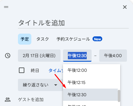 開始時間を12:30で入力しておきます。