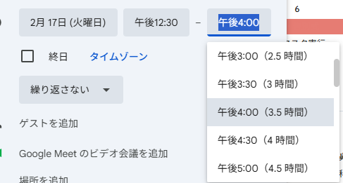 終了時間にも、移動時間+αを含めた時間を入れています。
