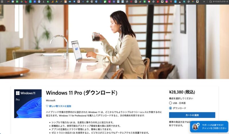 自宅兼事務所用のパソコンはWindows機にも紐づいているライセンスはあるのですが、それは使えないため、新しくProのライセンスを購入しました。