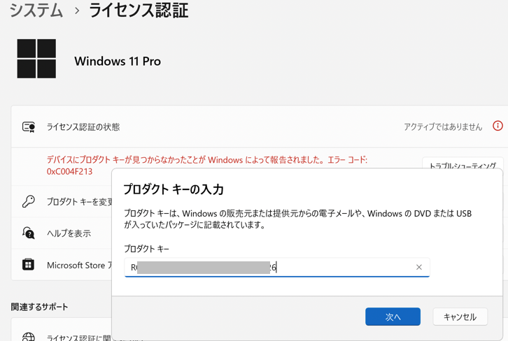 Windows11のライセンスキー(プロダクトキー)を購入。