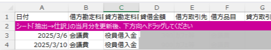 ・日付を置換で新しい仕訳の日付にできる