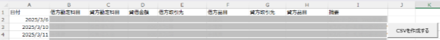 たとえば、Excelでこのような欄をつくっておいて、