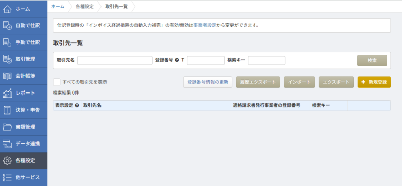 取引先の情報は、会計データに残しておく必要があります。